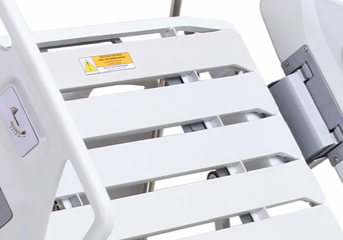 Side Guards With 220 mm height above mattress surface (maximum mattress thickness 100 mm), the safety side guards provide protection for patient from the risk of falling. Care giver can operate the side guards by just one hand.