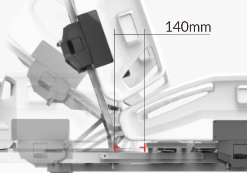 Auto Regress With Auto Regression feature, the back-raise platform will move 110 mm backwards and 35 mm upwards when the backrest is raised. That way it gives more space in the patient’s pelvic area, hence reduces pressure in the abdomen