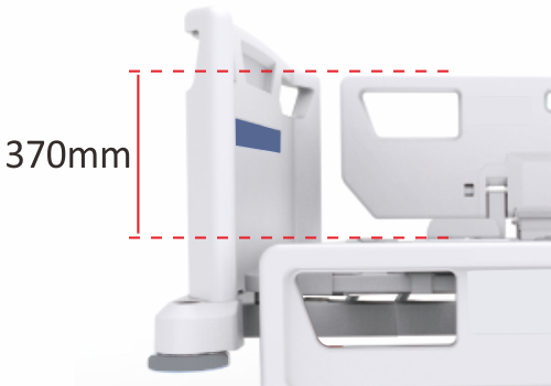 Full side guard panel height’s 270 mm from the mattress ensures protecting against patient falls. Further side guard gap protects against patient’s finger pinch as well according to IEC 60601-2-52.